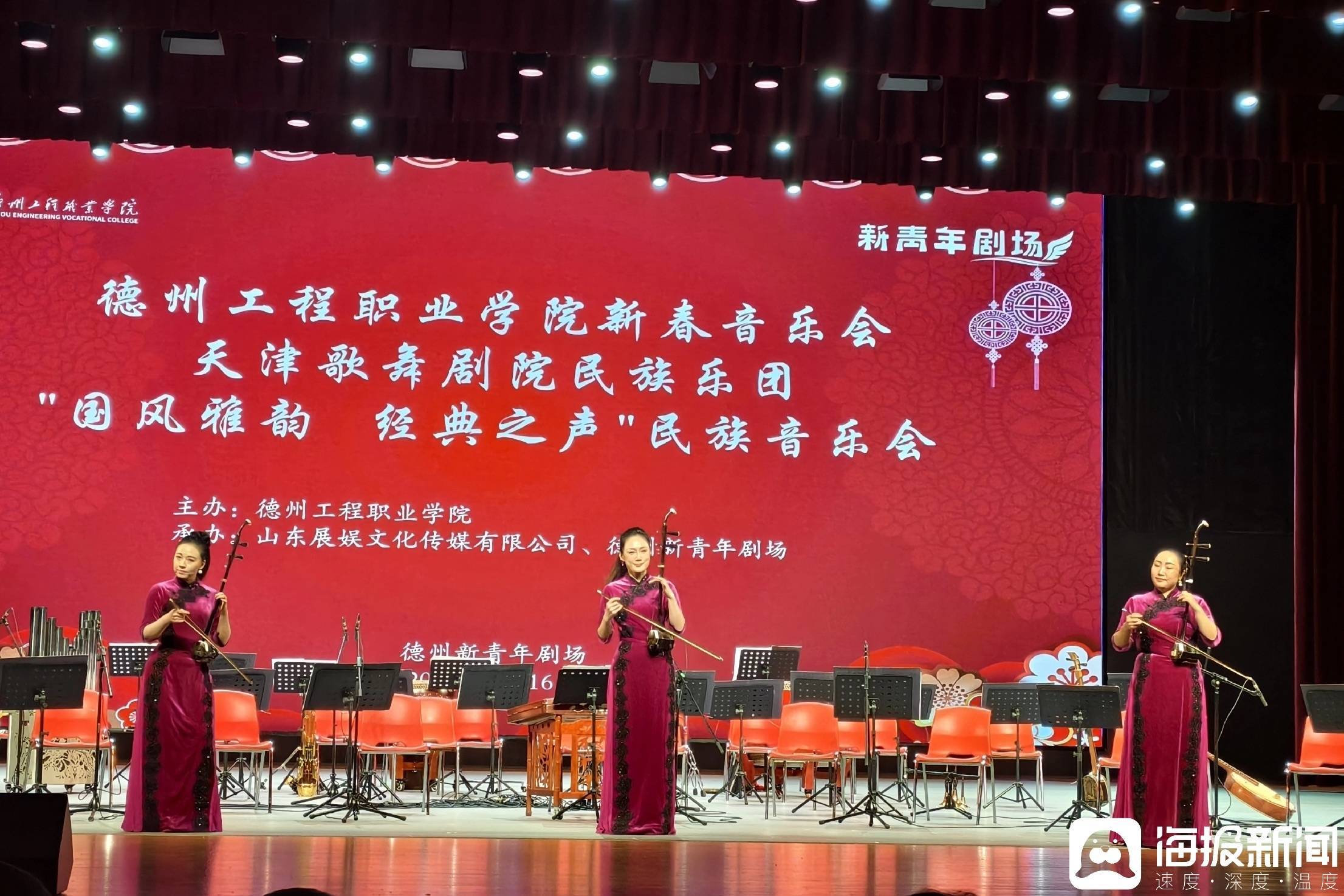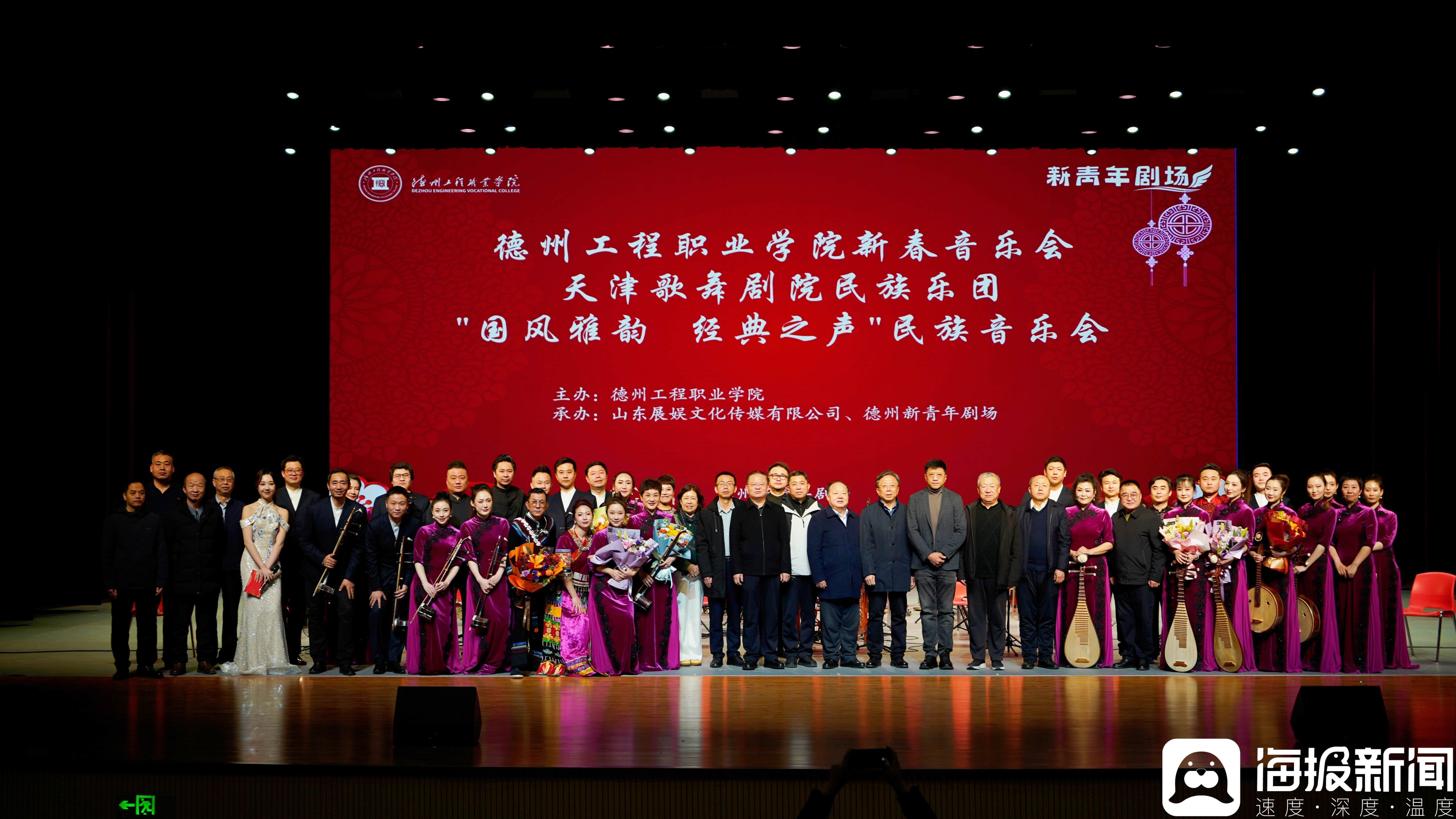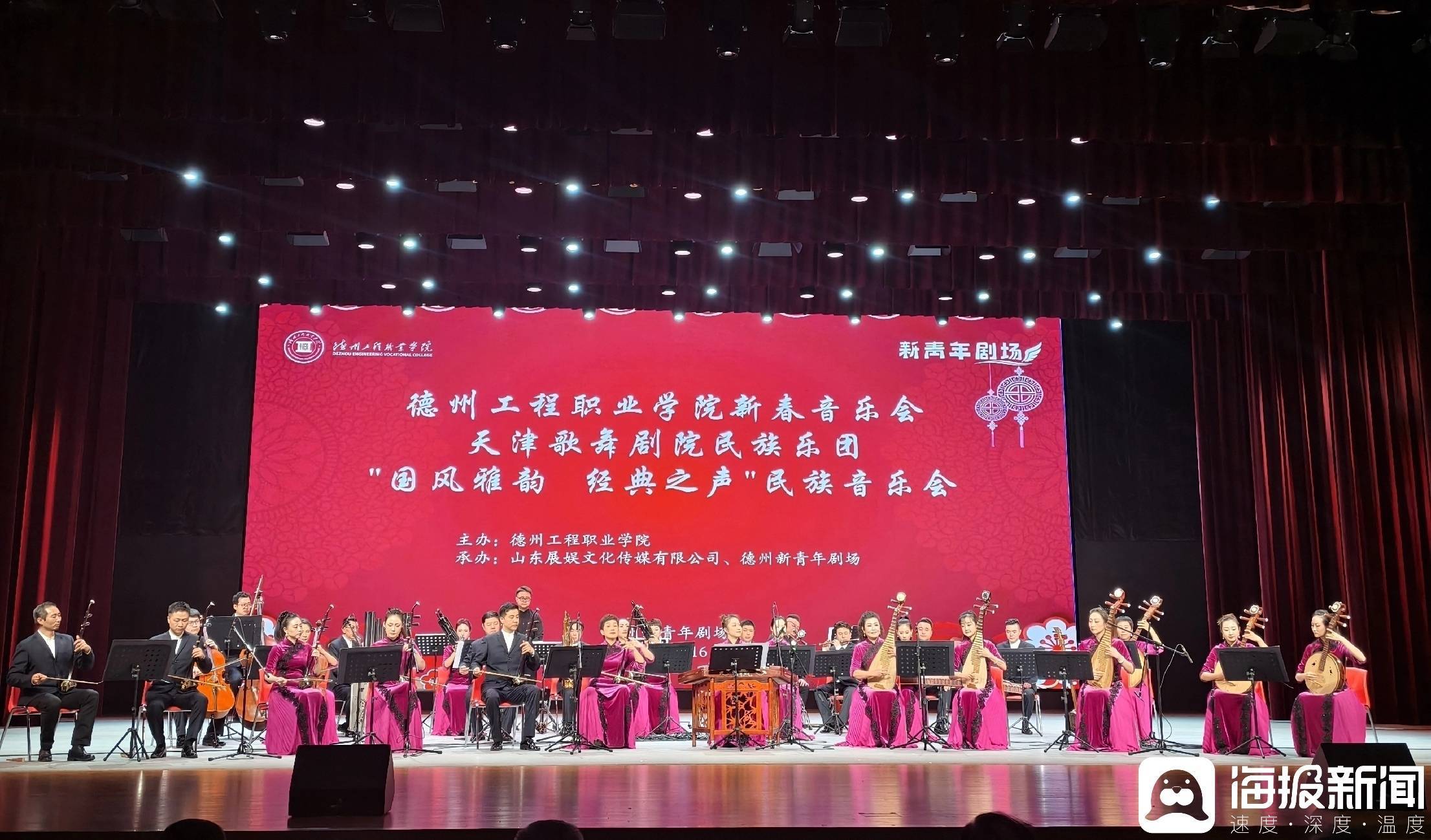 1月16日晚,德州工程职业学院新青年剧场内灯火璀璨、乐声悠扬。天津歌舞剧院民族乐团“国风雅韵 经典之声”民族音乐会在此精彩上演,标志着该校新建成的现代化剧场正式启用并迎来首场对外高水平演出。活动不仅是一场艺术的盛宴,更是学校深化产教融合、拓展美育平台、服务地方文化发展的重要举措。