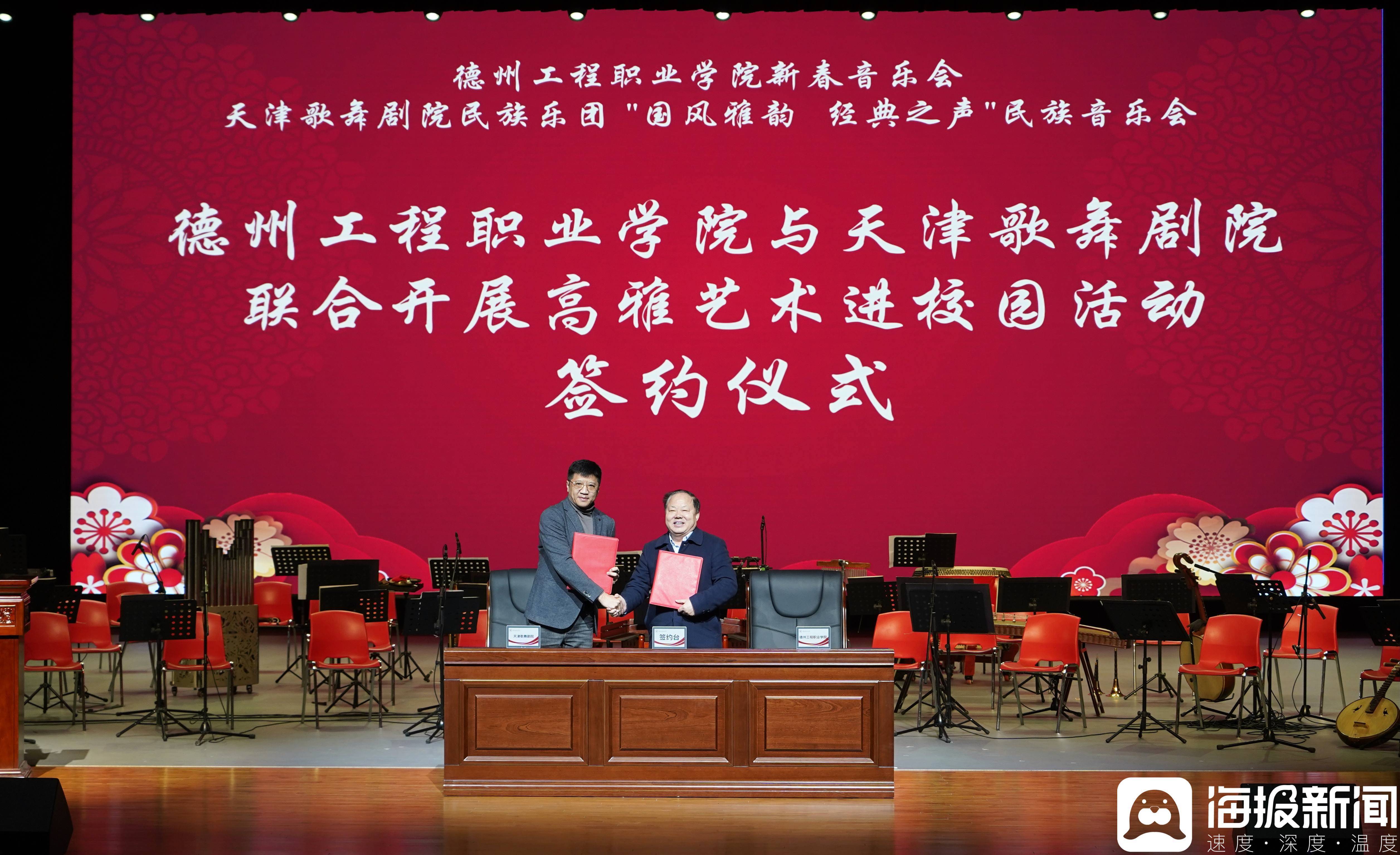 此次活动内容丰实,意义深远。德州工程职业学院与天津歌舞剧院正式签署合作协议,共同推进“高雅艺术进校园”长效化、机制化。同时,“德州音乐家协会德州工程职业学院实践基地”也正式揭牌成立,为在校学生提供专业艺术实践平台,促进校园文化与社会音乐资源的深度对接。